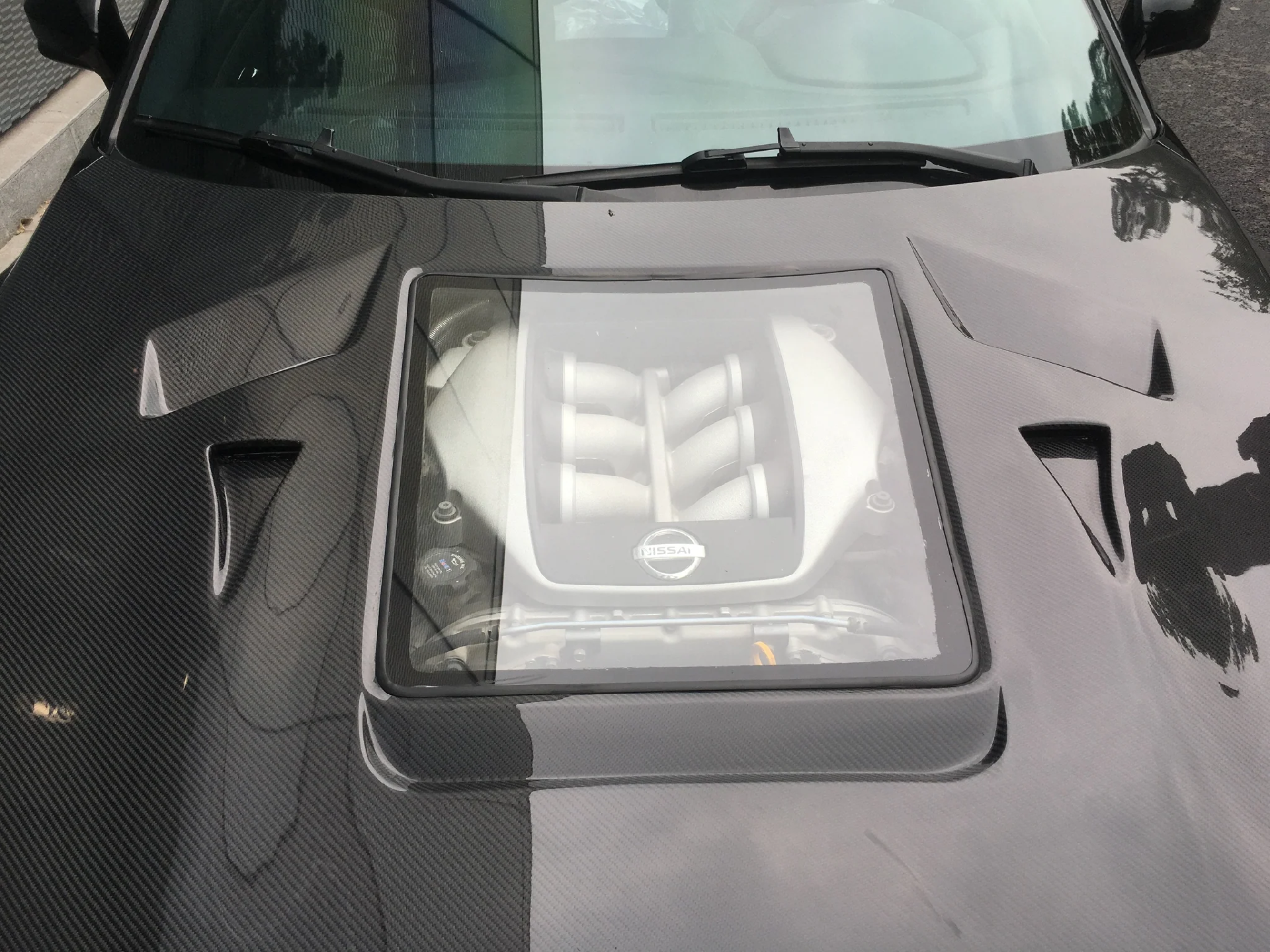 Nissan GTR GT-R R35 2008-2016 Carbon Fiber Tempered Glass Transparent Hood Window See Through