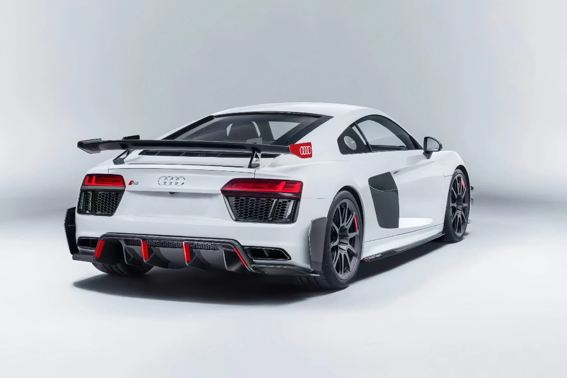 Performance Parts Style Dry Carbon Fiber Trunk Wing with Base and Aluminum Legs 2016-2025 Audi R8 GE close left right