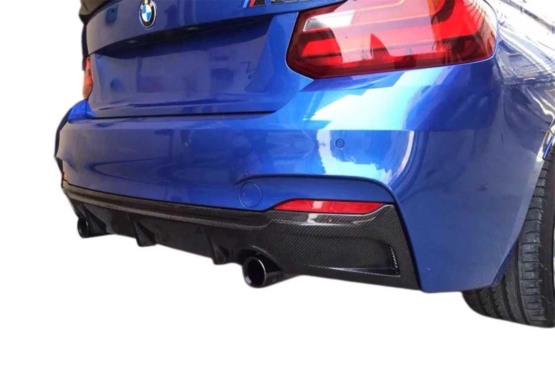 Exotics Style Carbon Fiber Rear Lip for 2014-2021 BMW 2 Series F22 & F23 (M-Tech Only) close left right