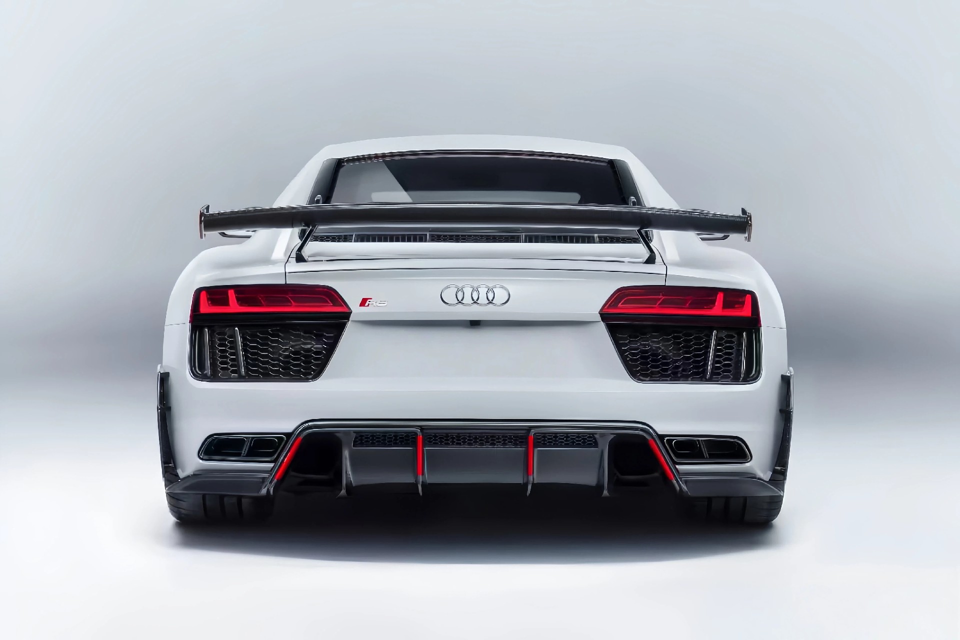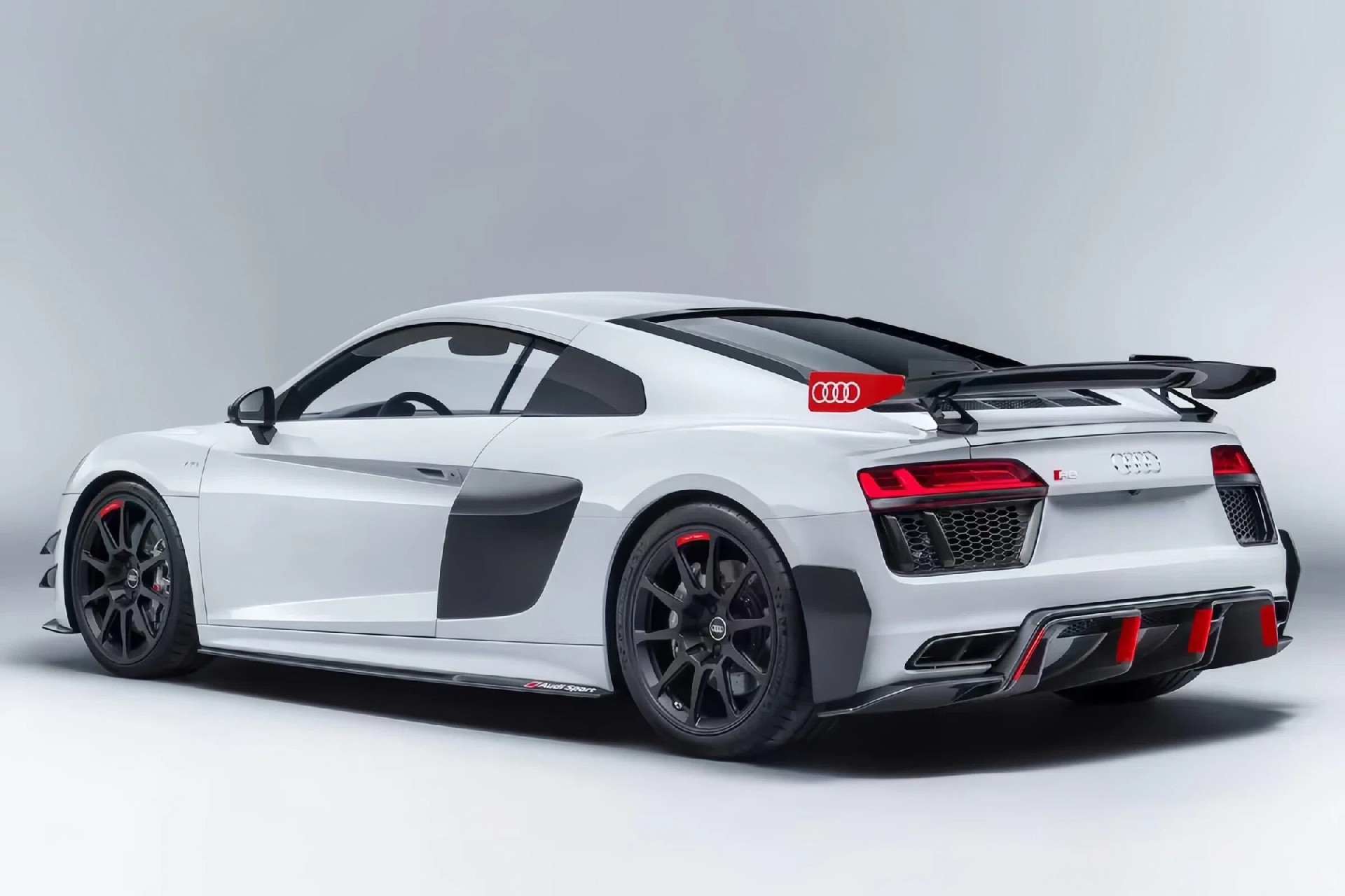 Performance Parts Style Dry Carbon Fiber Trunk Wing with Base and Aluminum Legs 2016-2025 Audi R8 GE close left right