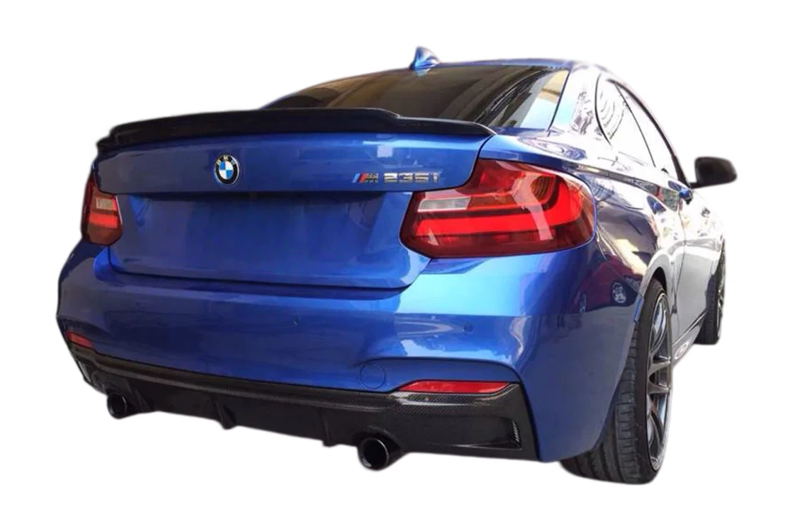 Exotics Style Carbon Fiber Rear Lip for 2014-2021 BMW 2 Series F22 & F23 (M-Tech Only) close left right